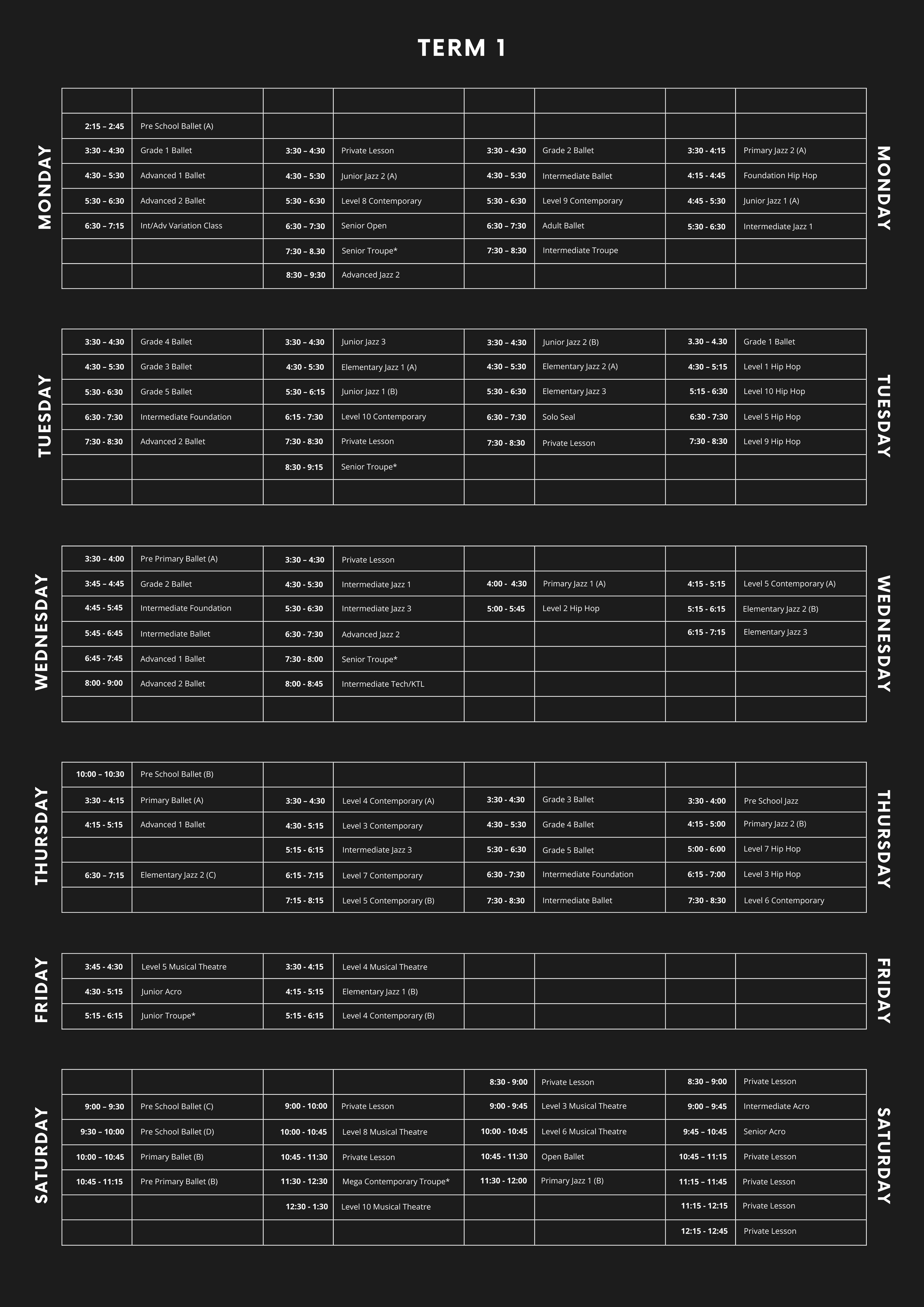 Good Friday Friday 3rd April (Term 1) *no classes Saturday 4th