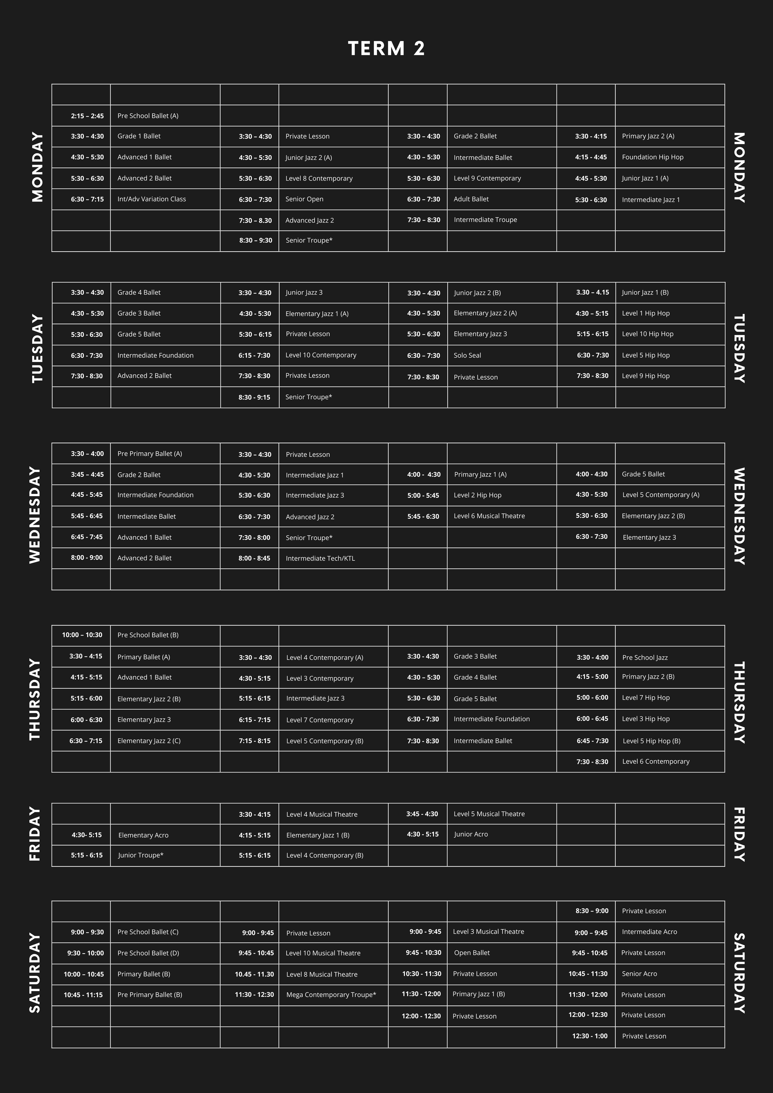 Kings Birthday Monday 1st June (Term 2) *no classes Saturday 30th